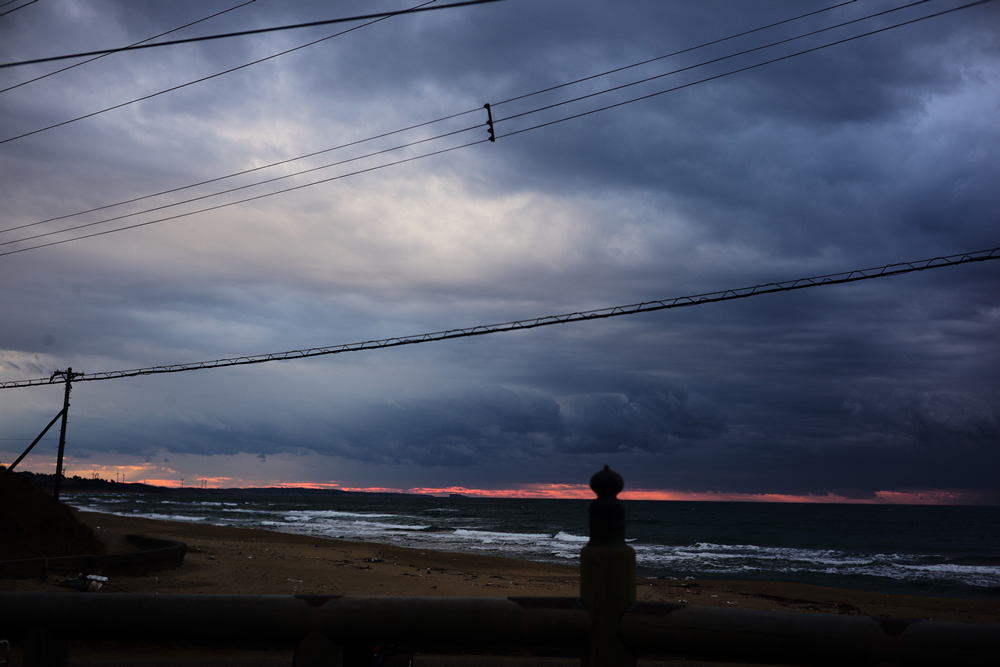 夕暮れ 冷たい風の波打ち際 ここは海辺の小さなコーヒー屋 本日もうみぼう...···